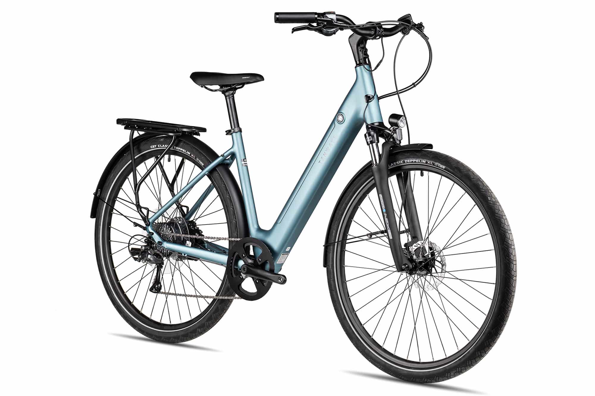 Zusammen mit dem kräftigen Hinterradmotor kommst du gut mit Steigungen zurecht, denn die Kettenschaltung lässt sich auch im vollen Tritt schalten., Der Akku ist dezent in den Rahmen integriert und praktischerweise nach oben entnehmbar., Geschaltet wird das Tenways CGO800 Plus mit einer leichten 8-Gang Shimano Schaltung aus der Claris Rennradserie., Das leichte Tenways CGO800 Plus City-E-Bike steht für müheloses Fahren in der Stadt, auch wenn es an deinem Wohnort etwas hügeliger ist., Wer ein komfortables, leichtes City-E-Bike sucht, ist mit dem Tenways CGO800 Plus fündig geworden., Es vereint elegantes Design mit einem durchdachten Konzept für deinen urbanen Alltag., Fast wie normales Radfahren, nur mit permanentem Rückenwind., Praktische Ausstattungsmerkmale wie ein zusätzlicher Schalter am Lenker zur Displaysteuerung und die Möglichkeit, Navigationsanweisungen aus der Tenways App direkt auf das klare Display zu übertragen, machen jede