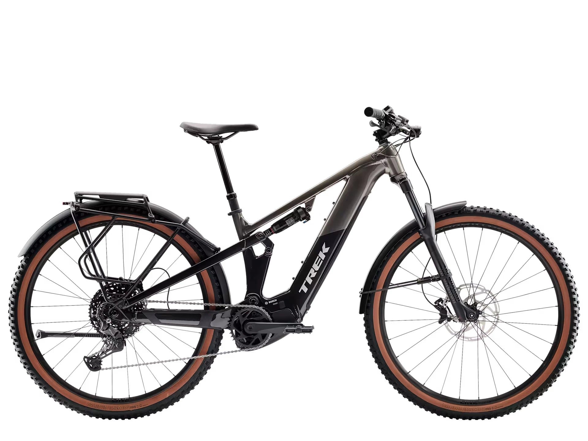 Trek Powerfly+ 4 EQ 800Wh Gen 5 Mercury/Dark Web 2026Das Powerfly FS+ 4 800Wh Equipped ist ein leistungsstarkes, vollgefedertes E-Mountainbike, das auch vor Abenteuern in den Bergen nicht kneift. Der kräftige Bosch-Motor stellt den nötigen Vorschub für steile Anstiege bereit, während dich der ausdauernde 800-Wh-Akku auch auf deinen längsten Abenteuern nicht im Stich lässt. Ein RockShox Fahrwerkspaket mit 130 mm vorderem und 120 mm hinterem Federweg bügelt auch die holprigsten Trails glatt, während der Shimano CUES 10fach-Antrieb in jedem Terrain superpräzise Gangwechsel liefert. Und dank seiner umfangreichen Ausstattung samt Schutzblechen, Beleuchtung, Heckgepäckträger und Seitenständer ist es bestens für deinen Fahrradalttag gerüstet.
