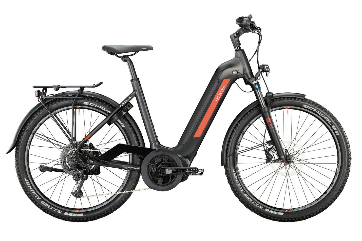 Versandkosten: 2 | Laufradgröße hinten: 27,5 | Motorleistung (Nm): 85 | Rücktritt/Freilauf: Freilauf | Ganganzahl: 11 | Rahmenmaterial: Aluminium | Laufradgröße vorne : 27,5 | Motorposition: Mittelmotor | Federung: luftgefedert | Schaltungstyp: Kettenschaltung | Akkuposition: intube | Bremsscheibe vorne (mm): 203 | Federweg (mm): 100 | Gabelhersteller: SR Suntour | Motorhersteller: Bosch | Bremssystem: Scheibenbremse | Rahmenform: Wave | Akku-Kapazität (Wh): 750 | Farbe: Anthrazit | Maximales Gesamtgewicht (kg): 140 | Rahmengröße: 46 cm | Gabel: SUNTOUR „SF21-MOBIE34 AIR“ | Vorbau: ERGOTEC „Sepia 50“ 318 mm | Reifen: CONTINENTAL „eRuban“, 27″x2,3, Reflex | Kette: SHIMANO „CN-LG500“ | Griffe: CONTEC „G-Link MTB Smol Wing“ | Motor: BOSCH „Performance CX“, 36 V, 250 W | Pedale: VP „VP-531E“, Aluminium, | Sattel: SELLE ROYAL „Explora“ Italy, Moderate Female | Kassette: FSA, 42T, megatooth | Schutzbleche: CURANA „Apollo“, 70mm, schwarz matt, Spoiler | Naben hinten: SHIMANO „FH-M6010-B“, 32 L., QR, Disc, Center-Lock | Schalthebel: SUNRACE „DL-MX33N RE“ | Naben vorne: SHIMANO „HB-M6010 „, QR 15, Disc, Center Lock | Lenker: ERGOTEC „Low Riser Bar“, 720 mm,31,8 mm, schwarz | Rückleuchte: CONTEC „TL-335 E-Stop“, mit Stoplicht | Scheinwerfer: CONTEC „Dlux 80 E+“ 80 Lux | Schloss: CONTEC „Powerloc XL AZ“ | Kettenschutz: CURANA „Chainguard“ | Display: BOSCH „Kiox 300“ | Bremshebel: SHIMANO „BL-M4100“ | Kurbelsatz: SUNRACE „CS-MS8EA5“ 11-51 Z. | Sattelstütze: LIMOTEC „B3 + RM07“, Suspension-Dropper-Post, 75mm | Schaltung: SUNRACE „RD-MX600MD“ | Gepäckträger: MIK-Aluminium-GEPÄCKTRÄGER „TA7652A“ MIK-System | Hersteller-Farbe: anthracite grey matt | Schaltungshersteller: SunRace | Bremse: SHIMANO „BR-MT420/410“ | Felgen: MACH 1 „MAXX“ | Speichen: 2,0 mm, Niro, black | Ständer: URSUS „King2“, für Victoria Hinterbau, 40 mm, verstellbar | Akku: BOSCH „Powertube 750“, Lithium-Ionen mit BMS, 750 Wh | Gewicht ca. (kg): 24.2