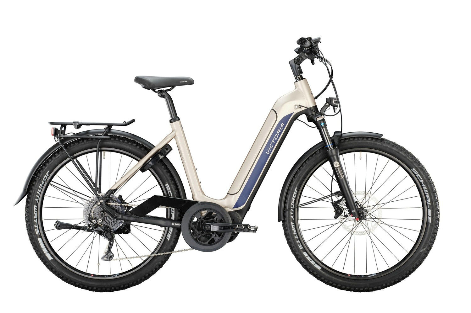 Display: BOSCH, „Intuvia “ | Versandkosten: 2 | Motorhersteller: Bosch | Maximales Gesamtgewicht (kg): 140 | Rücktritt/Freilauf: Freilauf | Griffe: CONTEC „Tour Wing“ | Ständer: URSUS „King2“, für Victoria Hinterbau, 40 mm, verstellbar | Rahmenmaterial: Aluminium | Hersteller-Farbe: grey matt | Bremssystem: Scheibenbremse | Motorposition: Mittelmotor | Schaltungstyp: Kettenschaltung | Gabelhersteller: SR Suntour | Schaltungshersteller: Shimano | Akkuposition: intube | Rahmenform: Wave | Motorleistung (Nm): 85 | Federweg (mm): 100 | Farbe: Beige | Federung: luftgefedert | Bremsscheibe vorne (mm): 203 | Laufradgröße hinten: 27,5 | Laufradgröße vorne : 27,5 | Ganganzahl: 10 | Gabel: SUNTOUR „SF21-MOBIE34 AIR“ | Vorbau: ERGOTEC „Sepia 50“ 318 mm | Kette: SHIMANO „CN-LG500“ | Pedale: VP „VP-531E“, Aluminium, | Gepäckträger: MIK-Aluminium-gepäckträger „TA7652A“ MIK-System | Kassette: FSA, 42T, megatooth | Schutzbleche: CURANA „Apollo“, 70mm, schwarz matt, Spoiler | Lenker: ERGOTEC „Low Riser Bar“, 720 mm,31,8 mm, schwarz | Rückleuchte: CONTEC „TL-335 E-Stop“, mit Stoplicht | Schloss: CONTEC „Powerloc XL AZ“ | Kettenschutz: CURANA „Chainguard“ | Felgen: MACH 1 „MAXX“ | Speichen: 2,0 mm, Niro, black | Sattel: SELLE ROYAL „Lift“ Italy, Moderate Female | Sattelstütze: ERGOTEC Patent „Viper“,31,6 mm, 10mm Setback, Aluminium, black | Naben vorne: SHIMANO „HB-MT400“, QR 15, Disc, Center Lock | Bremse: SHIMANO „BR-MT420/410“ | Akku-Kapazität (Wh): 625 | Bremshebel: SHIMANO „BR-MT401“ | Schalthebel: SHIMANO „Deore“ SL-M5130-R10″ | Scheinwerfer: CONTEC „Dlux 80 E+“ 80 Lux | Schaltung: SHIMANO „Deore RD-M5130-GS“ | Kurbelsatz: SHIMANO „CS-LG600-10 “ 11-43 Z. silver | Reifen: SCHWALBE „Johnny Watts“, 60-584, Reflex | Naben hinten: SHIMANO „FH-Mt400 „, Disc | Akku: BOSCH „Powertube 625“, Lithium-Ionen mit BMS, 625 Wh | Motor: BOSCH Mittelmotor Gen.4 „Performance CX“, 36 V, 250 W | Gewicht ca. (kg): 25.7 | Rahmengröße: 56 cm