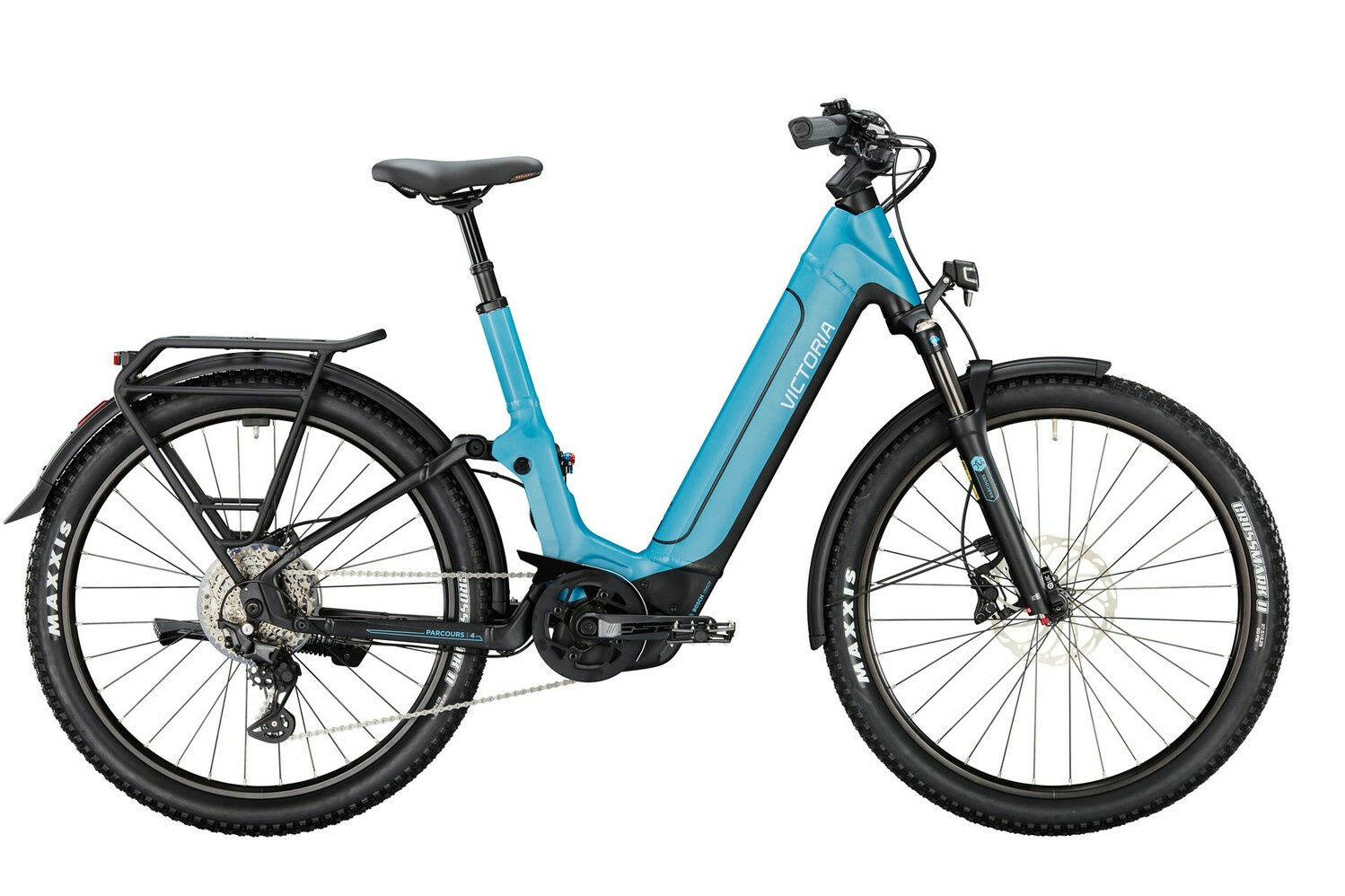 Versandkosten: 2 | Rücktritt/Freilauf: Freilauf | Rahmenmaterial: Aluminium | Bremsscheibe vorne (mm): 180 | Motorposition: Mittelmotor | Schaltungstyp: Kettenschaltung | Gabelhersteller: SR Suntour | Ganganzahl: 10 | Schaltungshersteller: Shimano | Akku-Kapazität (Wh): 625 | Akkuposition: intube | Federung: luftgefedert | Motorleistung (Nm): 85 | Bremssystem: Scheibenbremse | Federweg (mm): 100 | Laufradgröße hinten: 27,5 | Motorhersteller: Bosch | Rahmenform: Wave | Laufradgröße vorne : 27,5 | Maximales Gesamtgewicht (kg): 140 | Rahmengröße: 51 cm | Gabel: SUNTOUR „SF21-MOBIE34 AIR“ | Motor: BOSCH „Performance CX“, 36 V, 250 W | Sattel: SELLE ROYAL „Explora“ Italy, Moderate Female | Kassette: FSA, 42T, megatooth | Schutzbleche: CURANA „Apollo“, 70mm, schwarz matt, Spoiler | Naben hinten: SHIMANO „FH-M6010-B“, 32 L., QR, Disc, Center-Lock | Naben vorne: SHIMANO „HB-M6010 „, QR 15, Disc, Center Lock | Rückleuchte: CONTEC „TL-335 E-Stop“, mit Stoplicht | Kettenschutz: CURANA „Chainguard“ | Display: BOSCH „Kiox 300“ | Bremshebel: SHIMANO „BL-M4100“ | Bremse: SHIMANO „BR-MT420/410“ | Felgen: MACH 1 „MAXX“ | Speichen: 2,0 mm, Niro, black | Ständer: URSUS „King2“, für Victoria Hinterbau, 40 mm, verstellbar | Scheinwerfer: CONTEC „Dlux 120 E+“ 120 Lux | Lenker: ERGOTEC „Riser Bar 50“, 31,8 mm | Akku: BOSCH „Powertube 625“, Lithium-Ionen mit BMS, 625 Wh | Schalthebel: SHIMANO „SL-M5130-R“ | Schaltung: SHIMANO „RD-M5130 Deore“ | Vorbau: Victoria „Integrated Stem“ 318 mm | Griffe: CONTEC „G-Link Trekking Wing“ | Sattelstütze: LIMOTEC „A1 + RM07″, Dropper-Post, 75mm | Dämpfer: SUNTOUR“RS19 EDGE LOR8“, 80% Lockout | Reifen: SCHWALBE „Johnny Wahtts 365“, 60-584, Reflex | Gepäckträger: MIK-Aluminium-GEPÄCKTRÄGER „TA78552C“ MIK-System | Kette: SHIMANO „CS-LG600-10“ | Kurbelsatz: SHIMANO „CS-LG600-10 “ 11-4 | Hersteller-Farbe: dove blue matt | Farbe: Hellblau