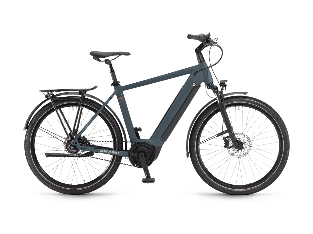 Winora Sinus R8Ef High City E-Bike (27,5″ | 500Wh | graublau)Du bist bereit für ein eBike und bevorzugst klassische Linien? Dann ist unser neues WINORA Sinus R8Ef mit Freilauf dein idealer Begleiter im Alltag und für entspannte Touren. Die Nabenschaltung und der Riemenantrieb machen dieses City eBike besonders pflegeleicht und wartungsarm und damit perfekt für Einsteiger. Zuverlässige Unterstützung bergauf bietet dir der leise Bosch Performance Smart System Line Motor mit 75 Nm Drehmoment. Er beschleunigt dynamisch und sorgt für ein natürliches Fahrgefühl. Mit dem formschön integrierten 500Wh Akku hast du genügend Energiereserven für Ausflüge in die Stadt oder ins Grüne. Die Stahlfedergabel von SR Suntour sowie ergonomische Griffe sorgen für Komfort und Sicherheit.Was uns ausmacht, ist irgendwo da draußen. Und mit jedem Pedaltritt kommen wir uns selbst ein Stück näher. Wir sitzen fest im Sattel und erkennen unsere Stärken. Auf unseren Touren entdecken wir die Schönheit der Natur. Wir fahren in die Berge und geben alles. Wir lassen uns mit dem Strom treiben und genießen die Ausblicke, die wir uns eigenständig erfahren. Wir erobern die Stadt und kommen dabei einfach immer gut an. Wir wachsen mit unseren Streifzügen und lassen den Alltag hinter uns. All das gehört zu den schillernden Facetten eines Lebensgefühls, das erst mit den richtigen Fahrrädern komplett wird.